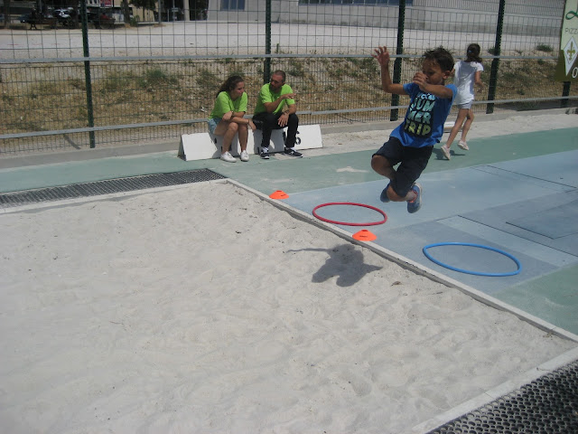 Durant l'après midi les enfants vont participer à 3 displines en athlétisme : la course, le saut et le lancé.
